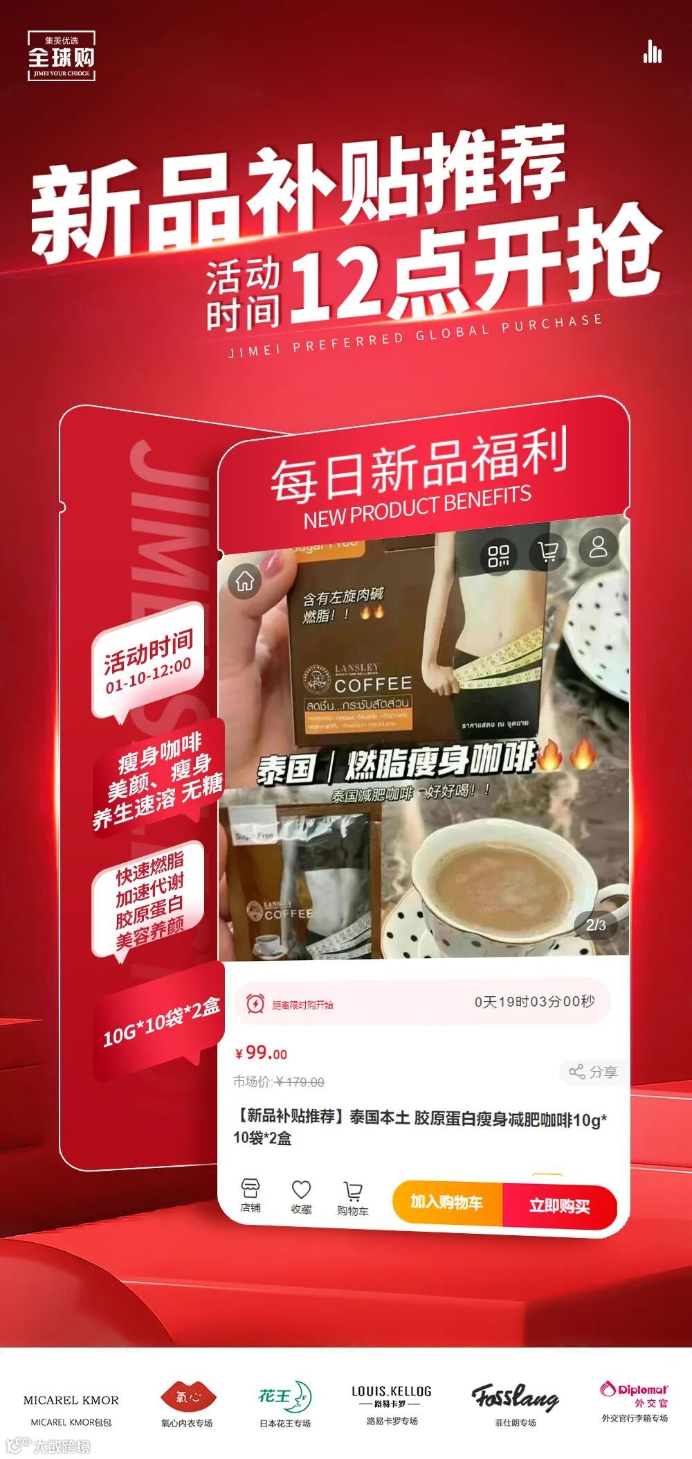 【新品补贴推荐】泰国本土 胶原蛋白瘦身减肥咖啡10g*10袋*2盒 原价:179元 粉丝群补贴价:99元