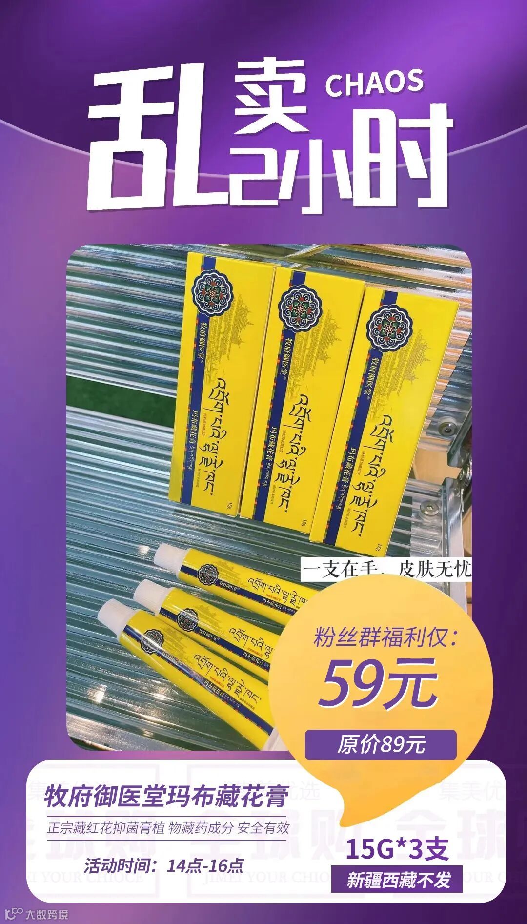 【乱卖2小时】牧府御医堂玛布藏花膏15g*3支 原价:89元 粉丝群补贴价:59元