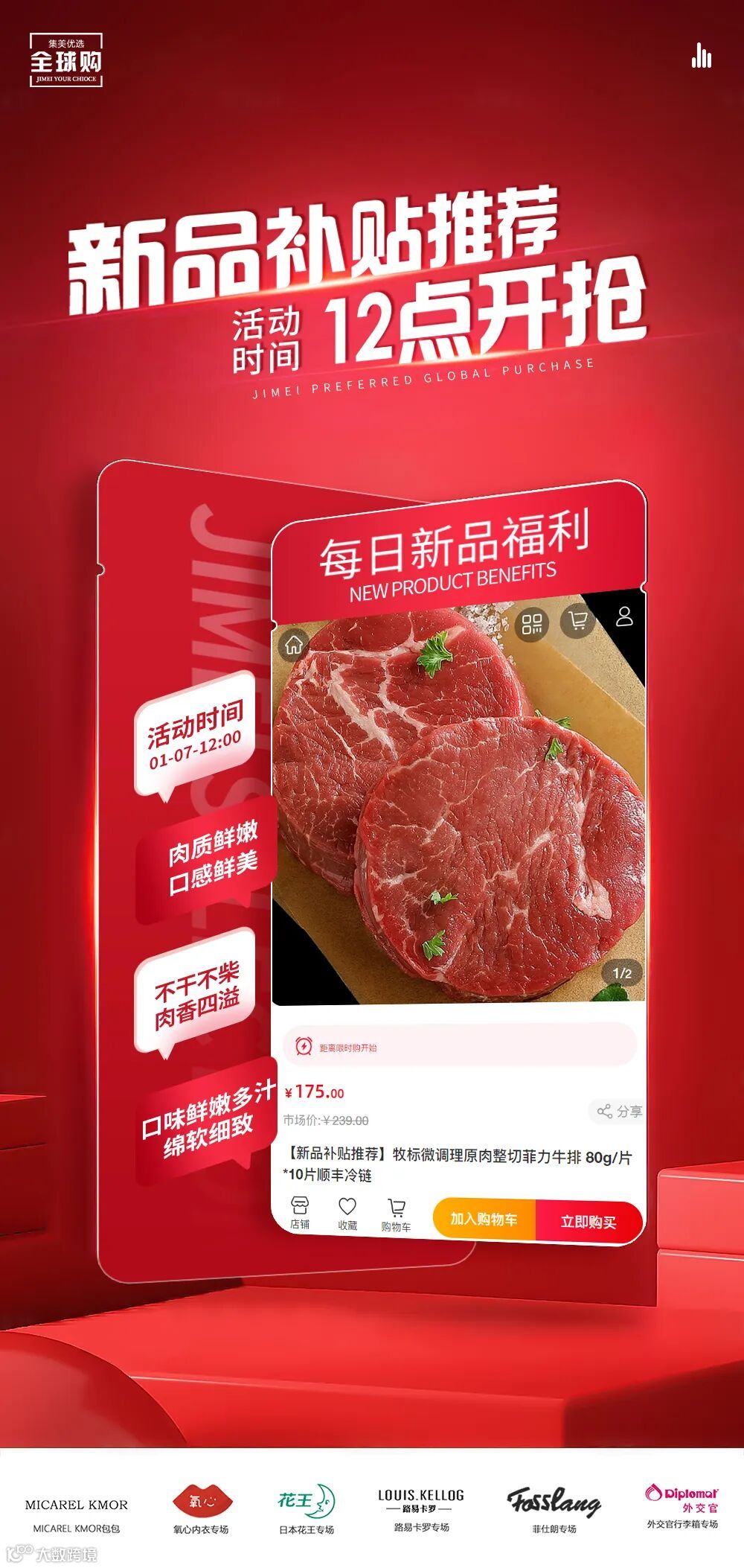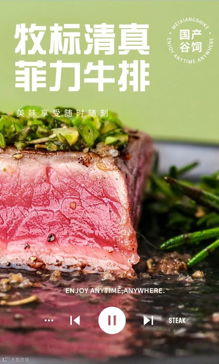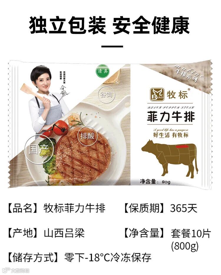 【新品补贴推荐】牧标微调理原肉整切菲力牛排 80g/片*10片顺丰冷链 原价:239元 粉丝群补贴价:175元