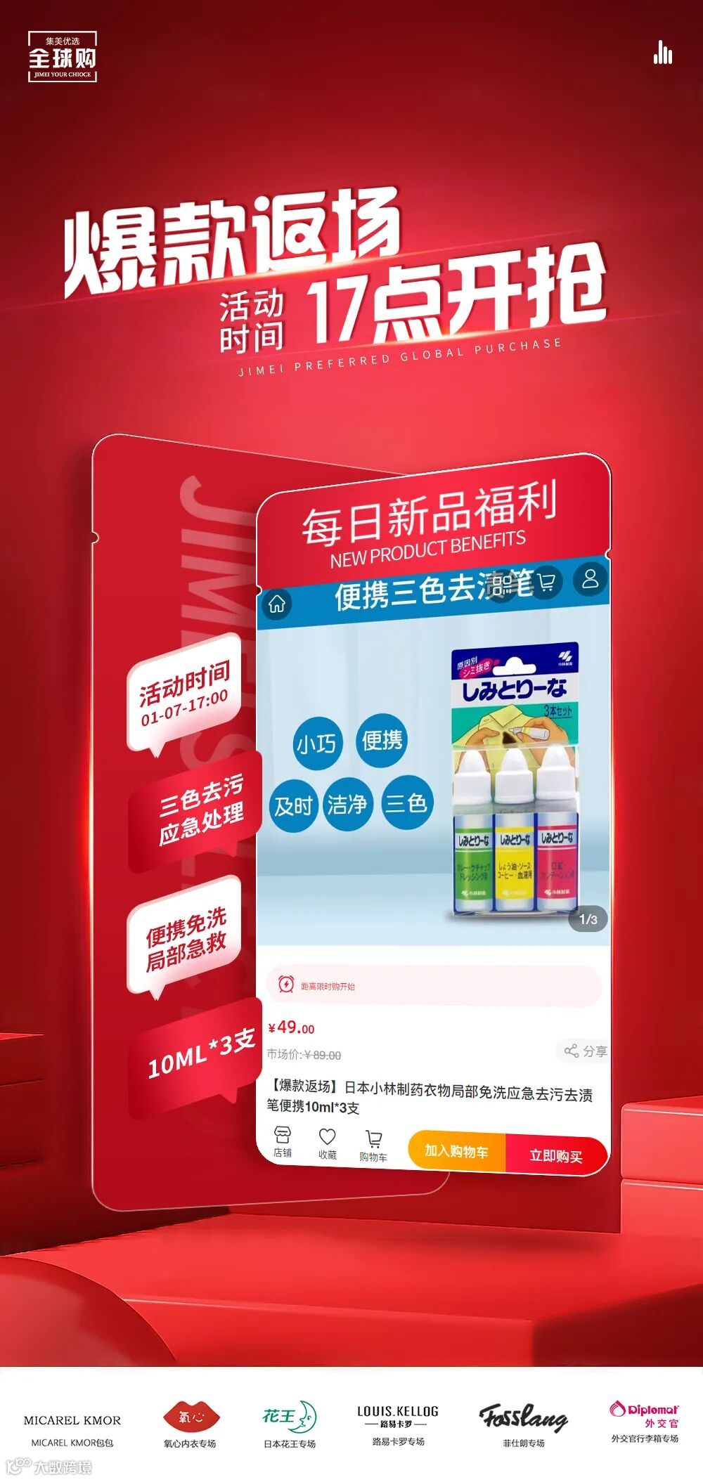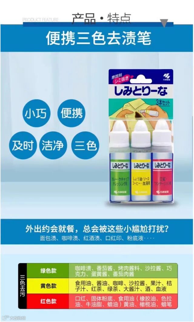 【爆款返场】日本小林制药衣物局部免洗应急去污去渍笔便携10ml*3支 原价:89元 粉丝群补贴价:49元
