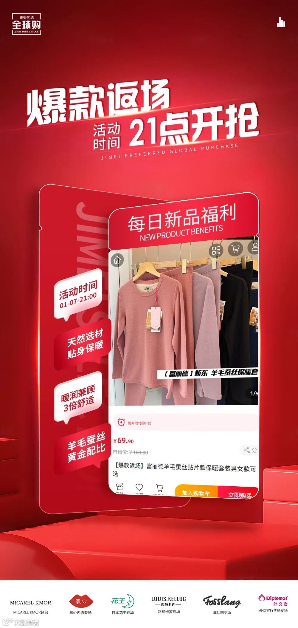 【重磅必入推荐】富丽德羊毛蚕丝贴片款保暖套装男女款可选 原价:199元 粉丝群补贴价:69.9元