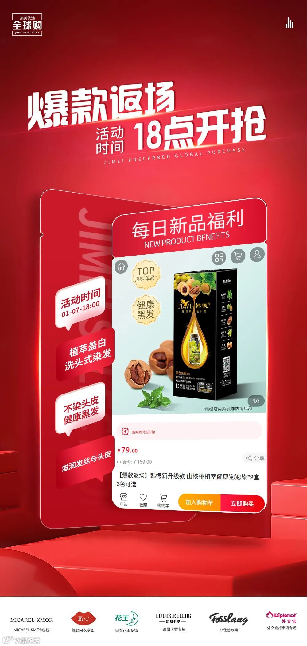 【爆款返场】韩愢新升级款 山核桃植萃健康泡泡染*2盒 3色可选 原价:159元 粉丝群补贴价:79元