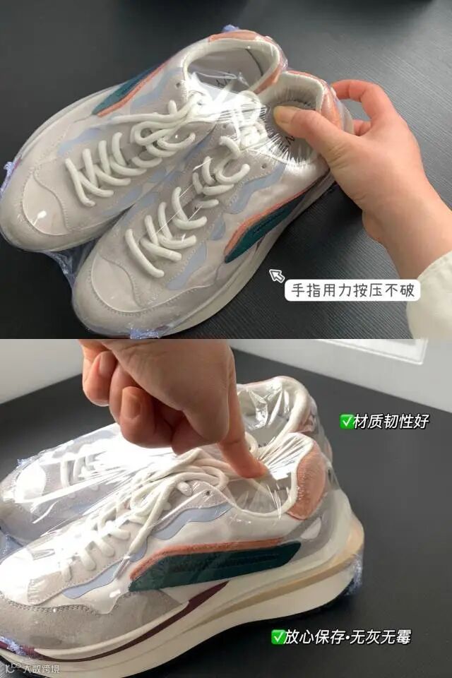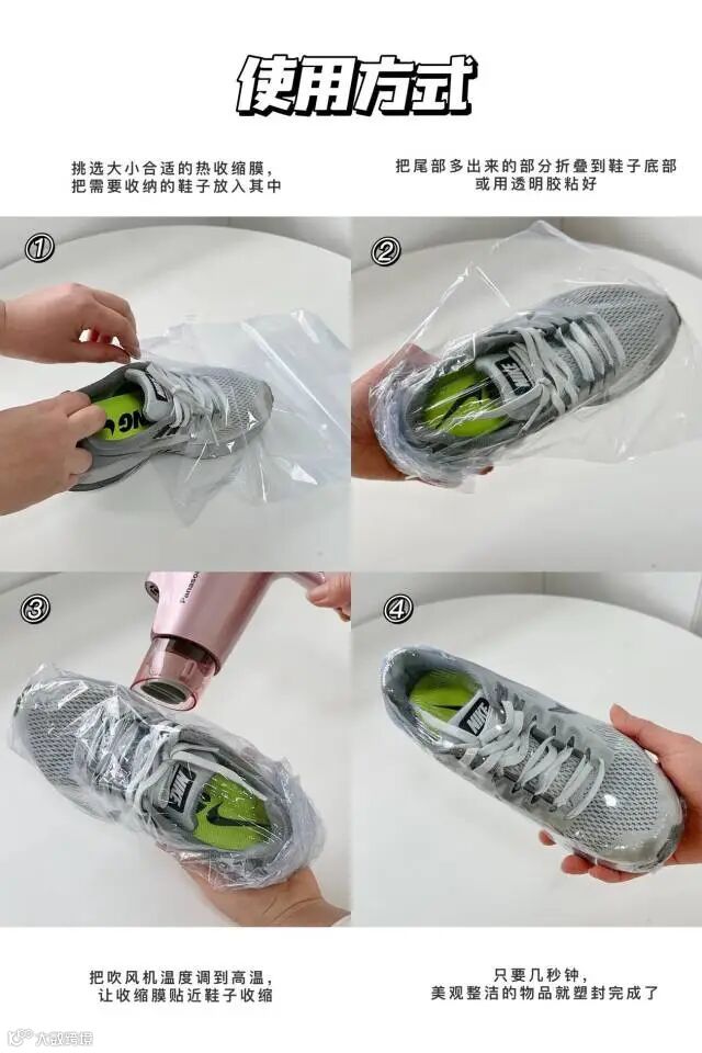 1、将鞋子放到适合的膜中