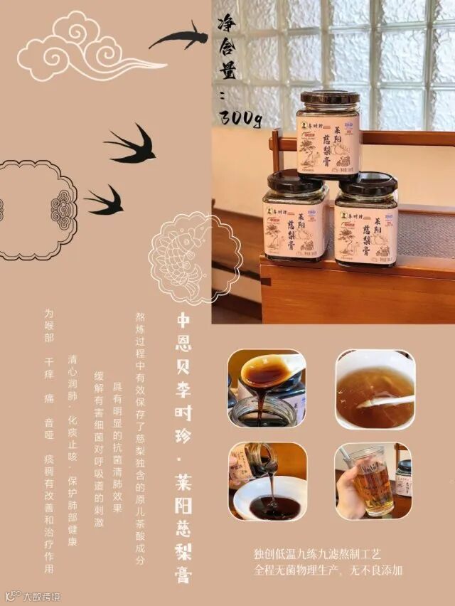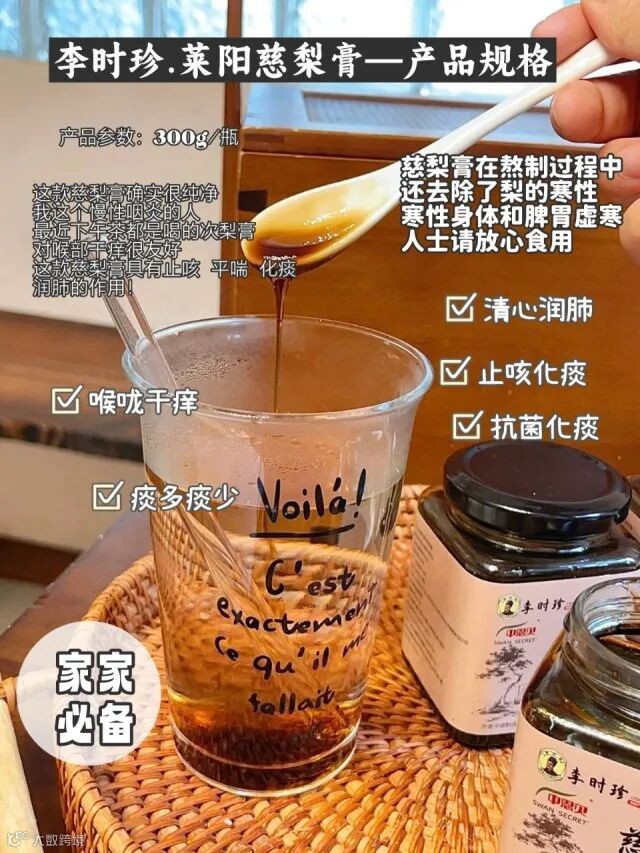 【粉丝群补贴·3瓶包邮】李时珍.中恩贝 莱阳慈梨膏300g/瓶