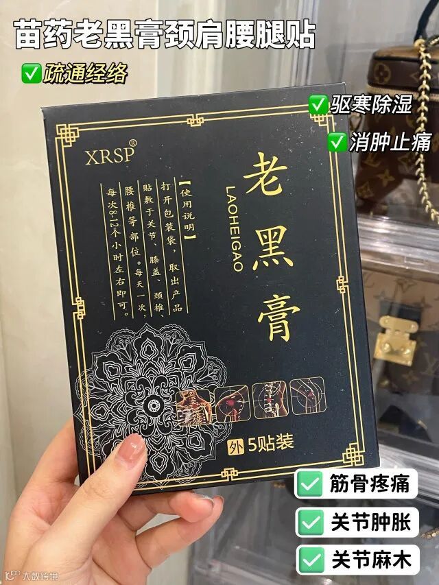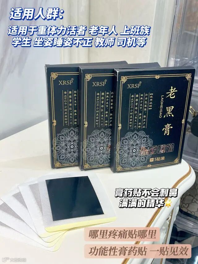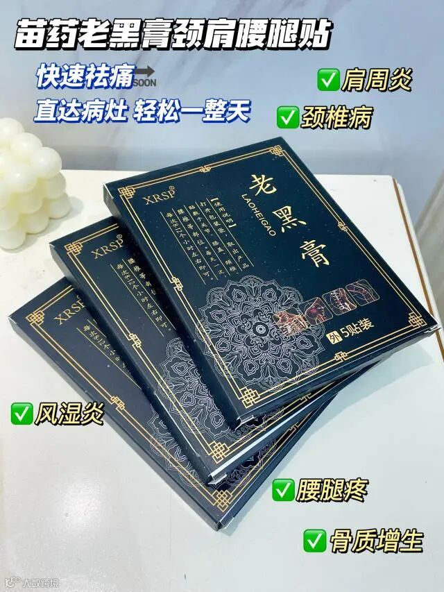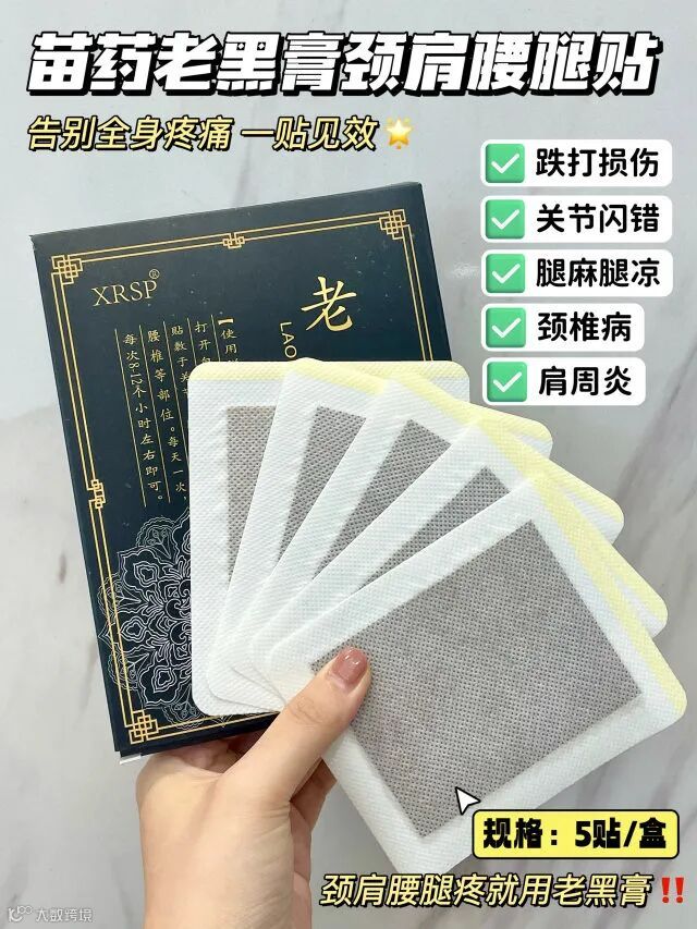 【新品补贴推荐·3盒包邮】XRSP 千年苗医秘方老黑膏5贴装/盒 原价:39元 粉丝群补贴价:16.9元