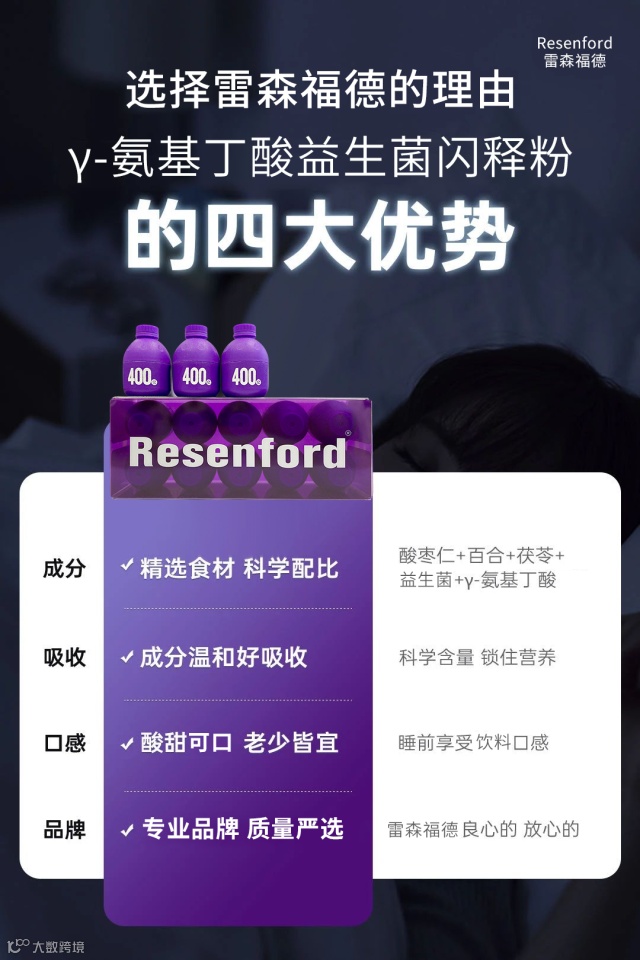 【重磅必入推荐·买三送一】Resenford雷森福德γ-氨基丁酸益生菌闪释粉20g/盒(2g*10瓶) 原价:149元 粉丝群补贴价:59.9 元