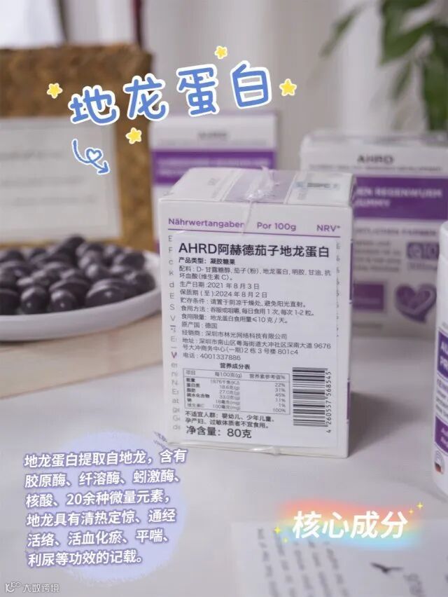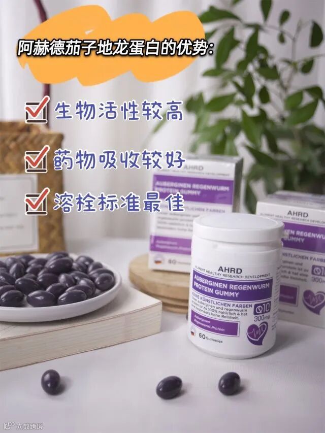 【重磅必入推荐】德国AHRD阿赫德茄子地龙蛋白凝胶 60粒/瓶 原价:289元 粉丝群补贴价:169元起