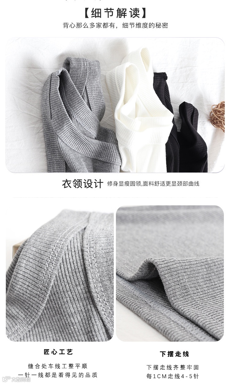 【乱卖2小时·买一送一】舒柔坊四季款螺纹针织弹力背心(黑色,白色,灰色可选)