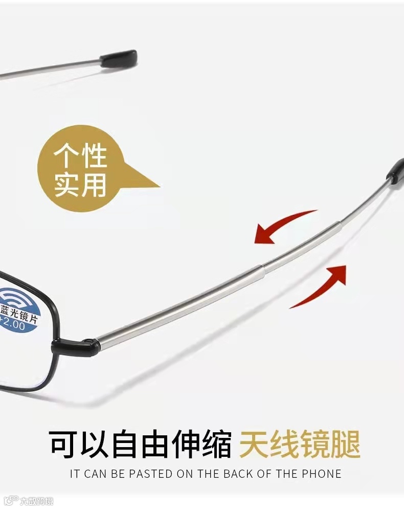 骊佳2118款德国设计师可折叠可伸缩天线防蓝光辐射护目老花眼镜(男女同款)