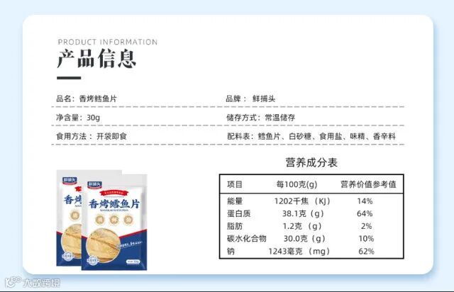 【粉丝群补贴】鲜捕头手撕香烤鳕鱼片30g*8袋 原价:109元 粉丝群补贴价:59元