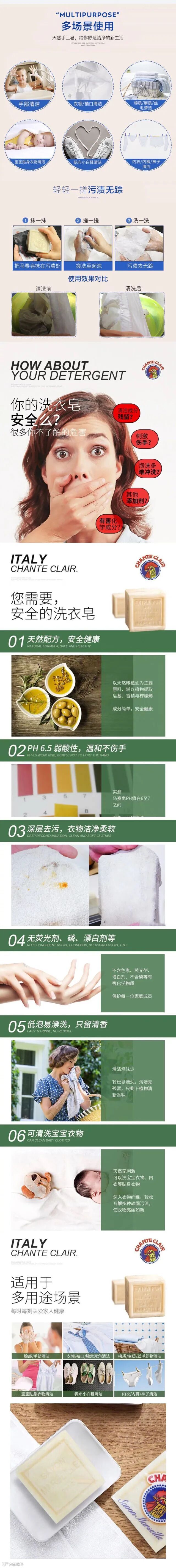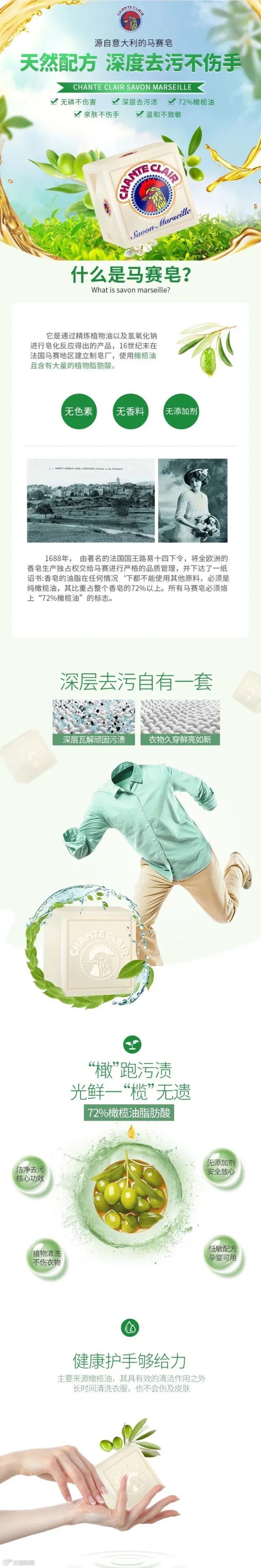 【粉丝群补贴】意大利Chante Clair大公鸡头管家马赛皂洗衣肥皂300g*4块 原价:109元 粉丝群补贴价:65元