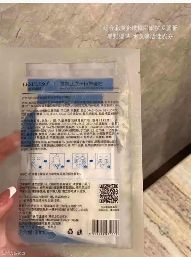 【粉丝群补贴·30片包邮】丽素丽速LESULESO依克多因/蓝铜肽冻干粉护理贴30ml/1片 原价:9.9元 粉丝群补贴价:1.9元
