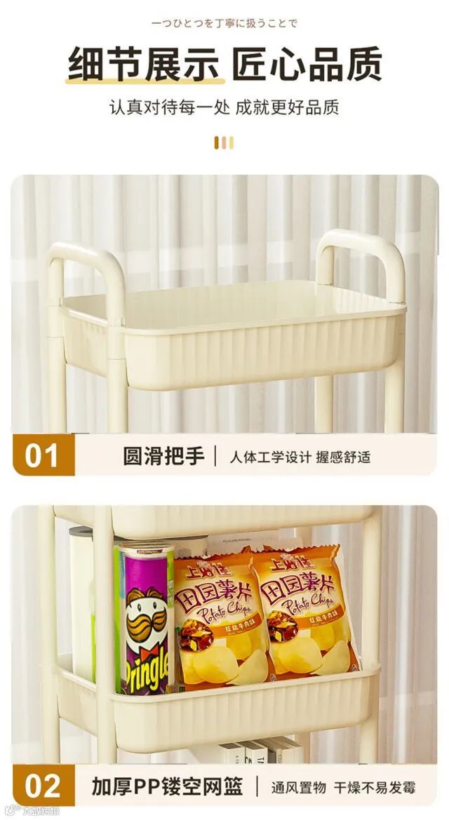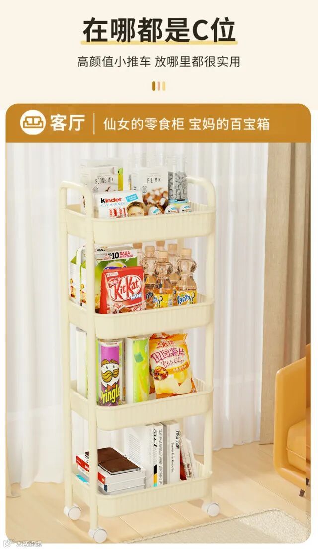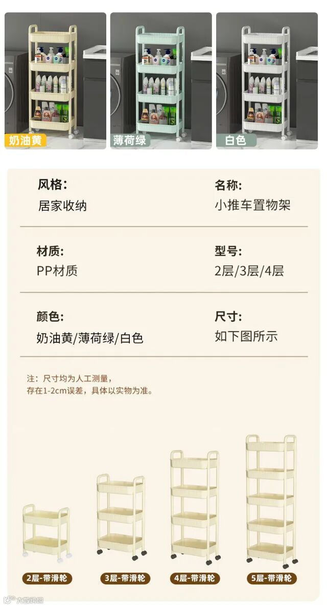 【粉丝群补贴】家居收纳置物小推车 2层/3层/4层可选 原价:49元 粉丝群补贴价:29.9元起
