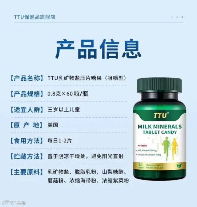 【主要成分】:乳矿物盐、脱脂乳粉、山梨糖醇.蘑菇粉、浓缩海带粉、浓缩紫菜粉