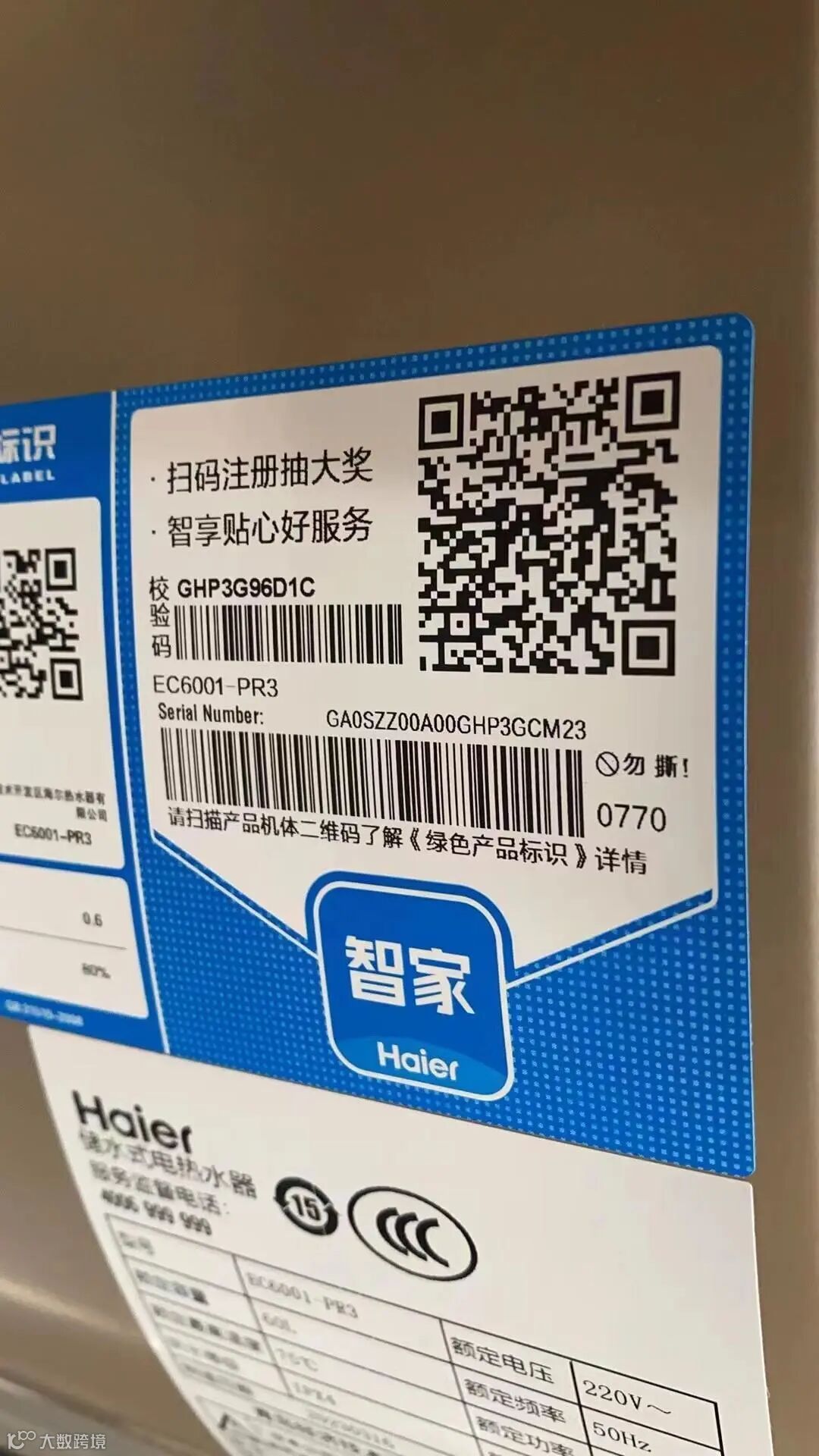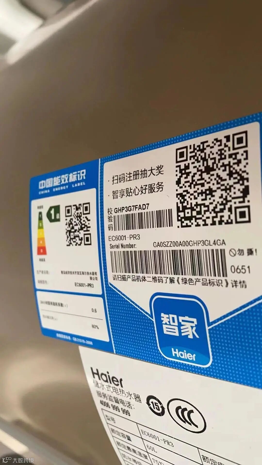 标的规格:海尔EC6001-PR3/海尔ES60H-GD3(U1)
