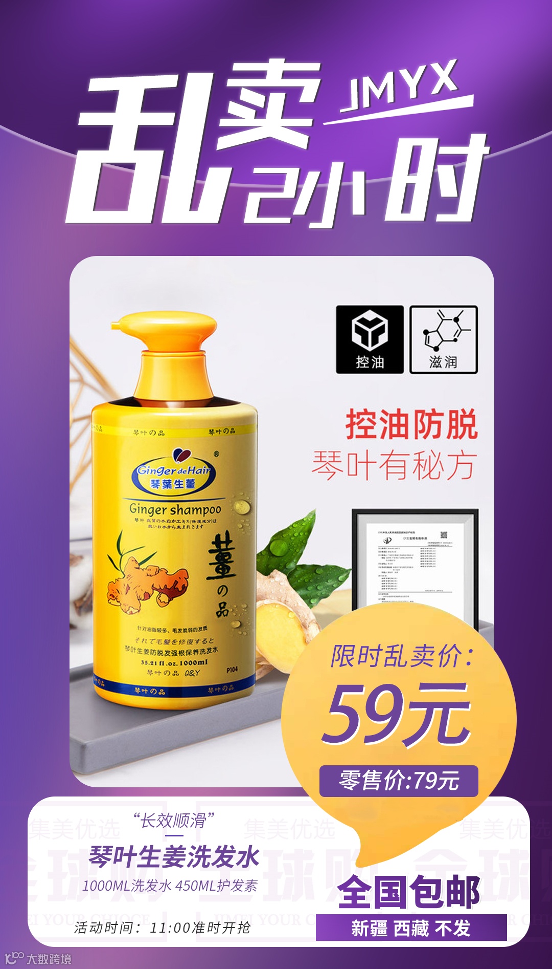 【乱卖2小时】琴叶生姜洗发水(1000ML洗发水 450ML护发素)多效可选