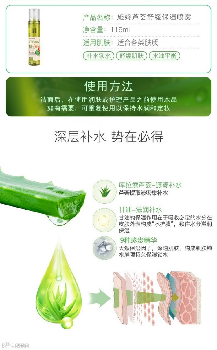 【粉丝群补贴】韩国进口施姈 舒缓面部身体保湿喷雾晒后修凝胶爽肤水115ml*1瓶(买2送1) 原价:59元 粉丝群补贴价:39.9元