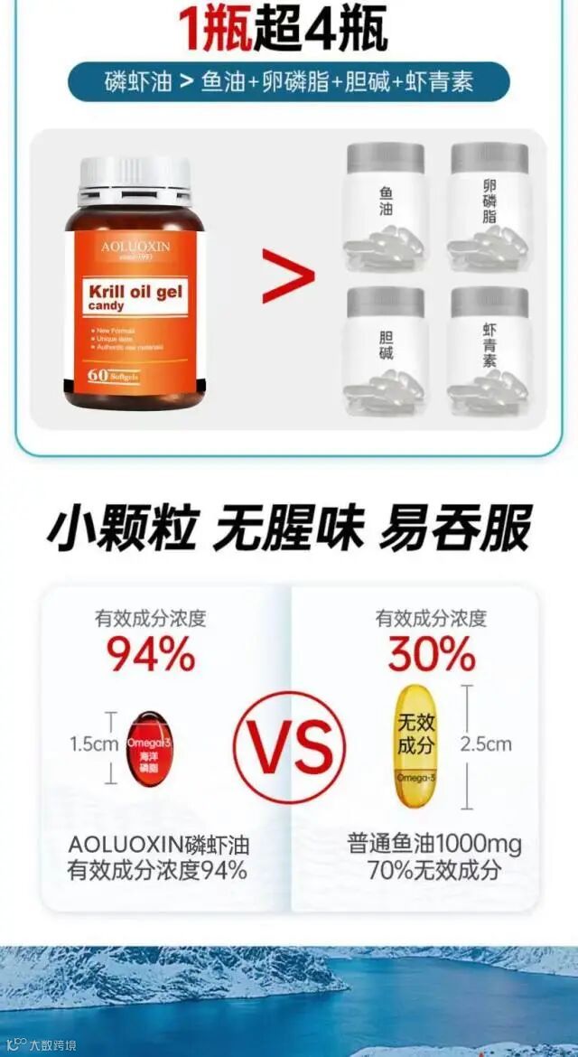【产品名称】:美国原装进口澳罗欣牌磷虾油凝胶糖果