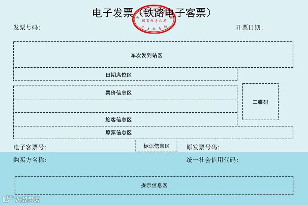 二、电子发票(铁路电子客票)属于全面数字化的电子发票,基本内容包括:发票号码、开票日期、购买方信息、旅客身份证件信息、行程信息、票价、二维码等。电子发票(铁路电子客票)样式见附件1。