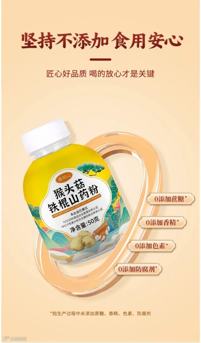 【粉丝群补贴·6瓶包邮】猴头菇铁棍山药粉50g/瓶 原价:39元 粉丝群补贴价:19.9元