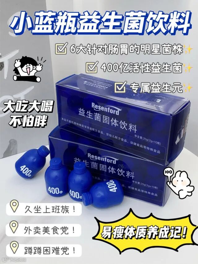 【粉丝群补贴】Resenford小蓝瓶/小粉瓶益生菌2g*10瓶 6种明星菌株促消化 原价:79元 粉丝群补贴价:39.9元