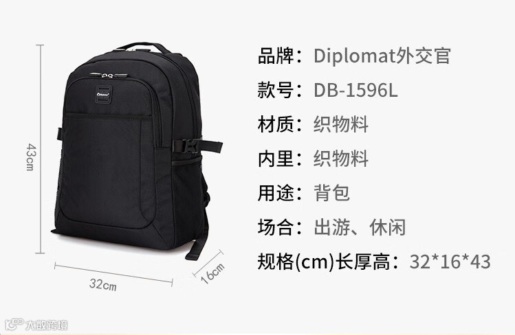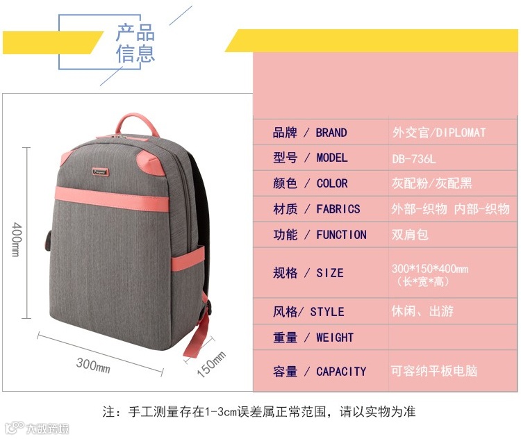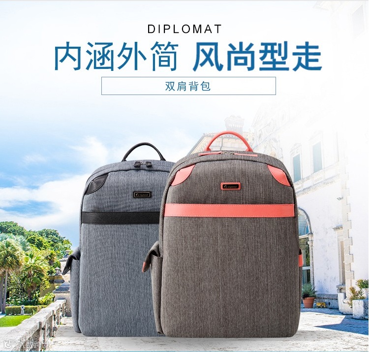外交官 商务双肩背包 灰配粉/灰配 DB-736L