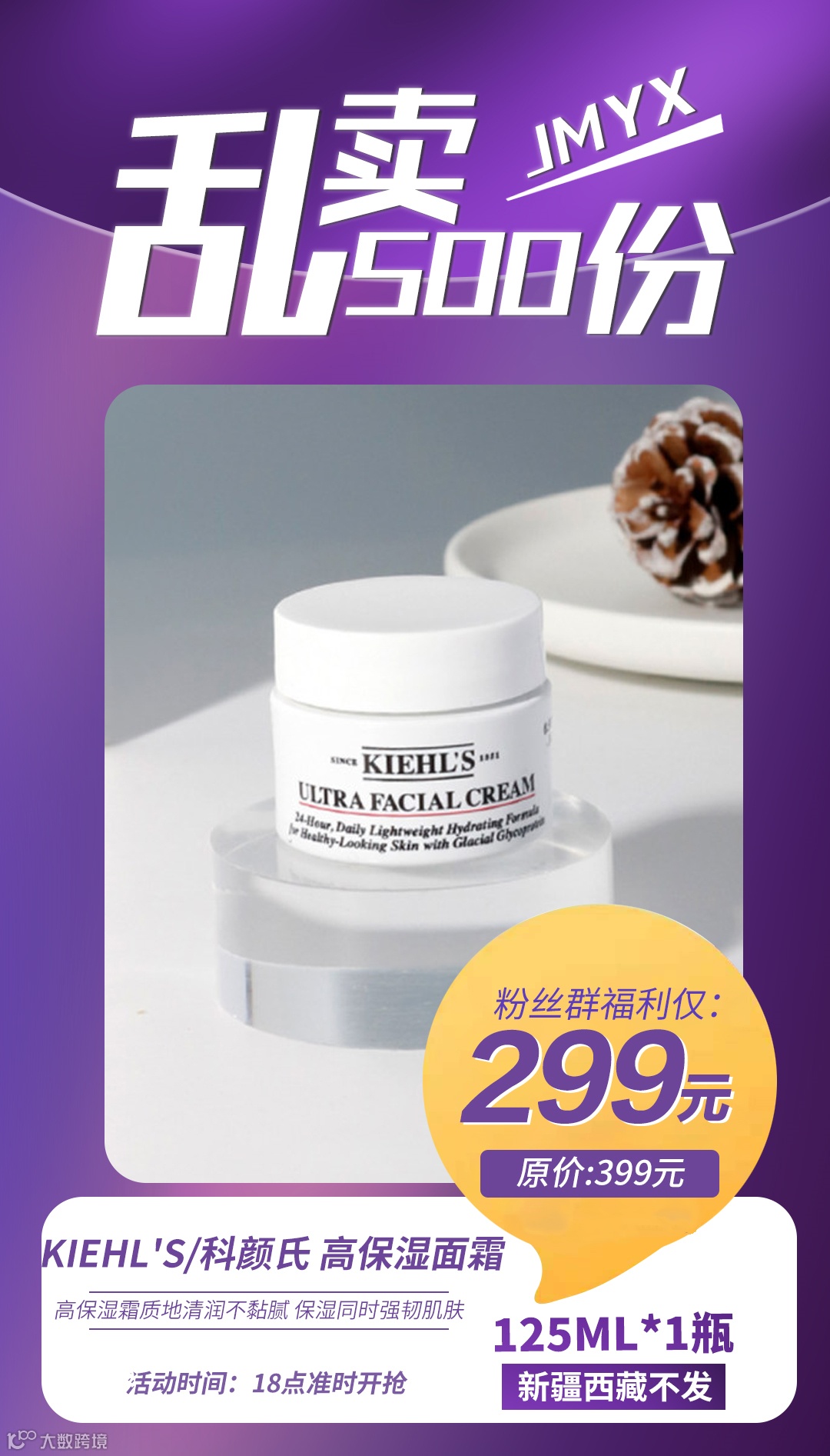 【乱卖500份·香港直邮】科颜氏高保湿面霜 125ml*1瓶 原价:399元 粉丝群补贴价:299元