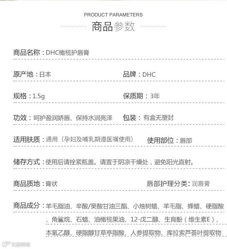 日本DHC天然橄榄润唇膏1.5g* 2支 保湿滋润无色 原价:109元 粉丝群补贴价:79元