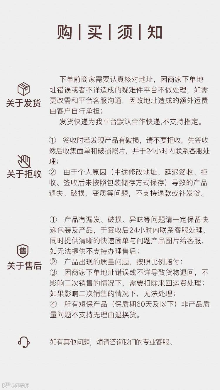 【售后说明】非质量问题不支持7天无理由退换,到货有质量问题,请在24小时内带快递面单+产品图片+视频反馈售后处理。因快递暴力导偶有裂开,不影响食用,介意慎拍。
