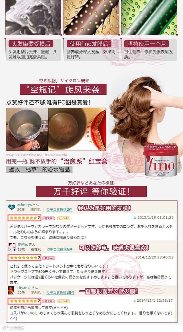 Shiseido资生堂fino渗透护发膜素230g*1瓶 日版COSME冠军 原价:158元 粉丝群补贴价:69元