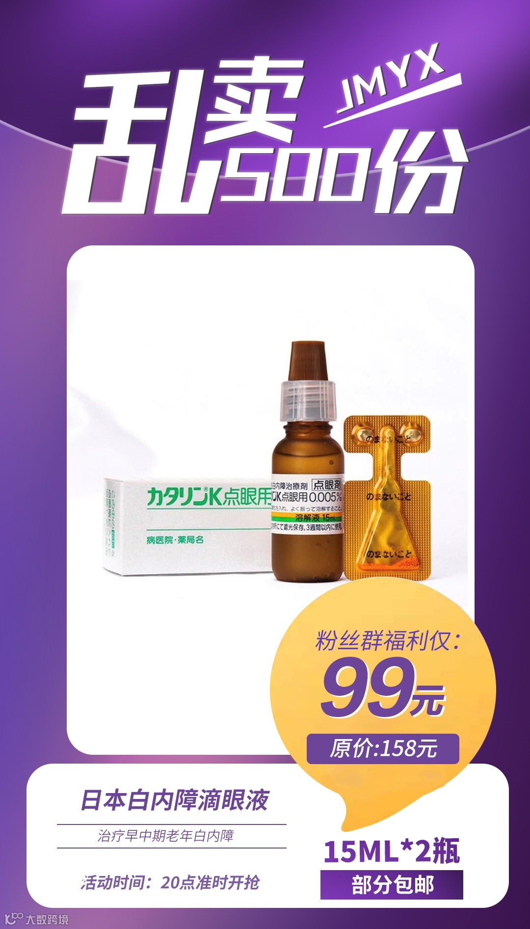 日本 武田千寿老年人白内障初期治疗眼药 水晶状体+混浊滴眼液15ml*2瓶 原价:158元 粉丝群补贴价:99元
