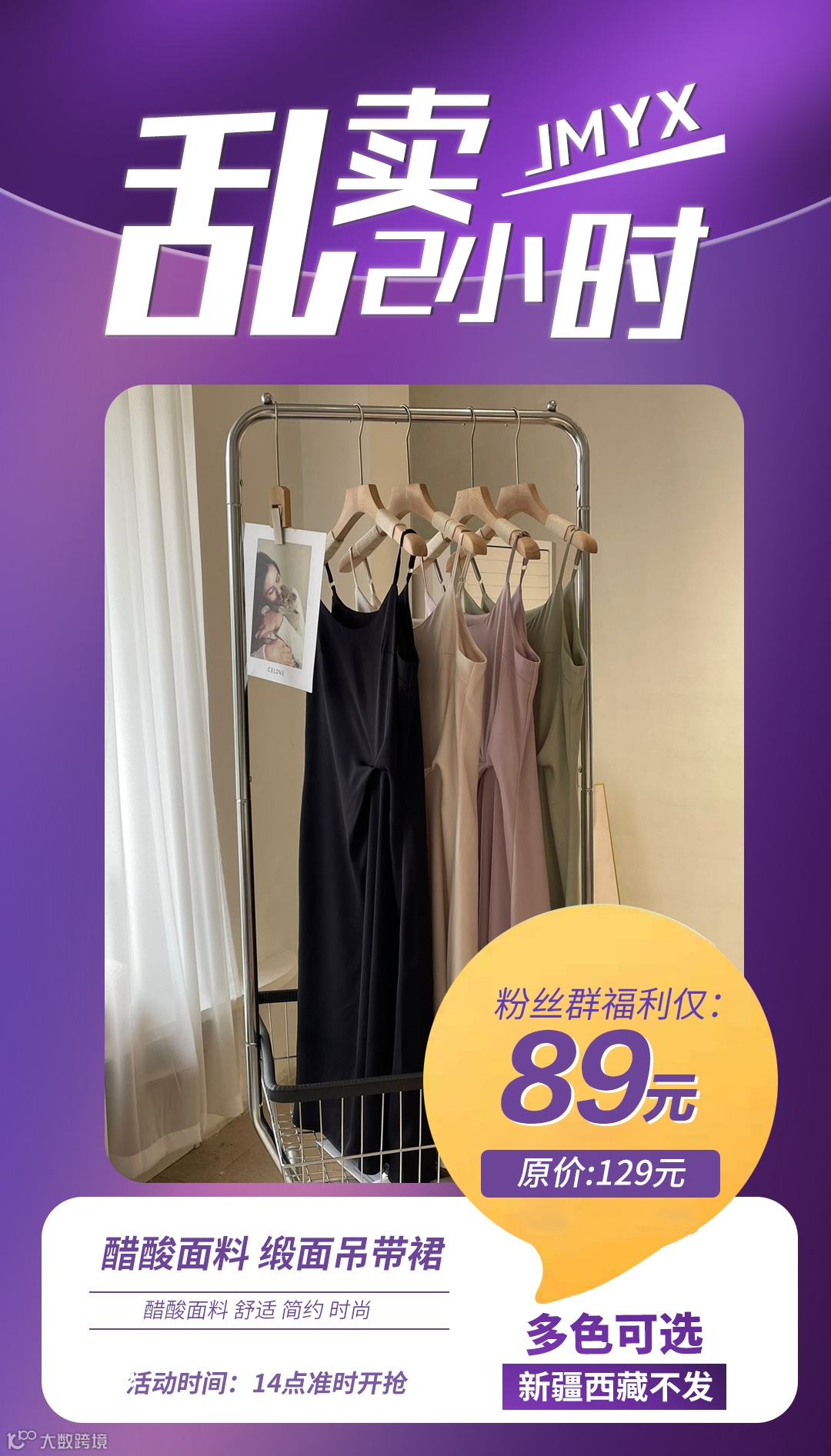 醋酸面料 缎面吊带裙 原价:129元 粉丝群补贴价:89元