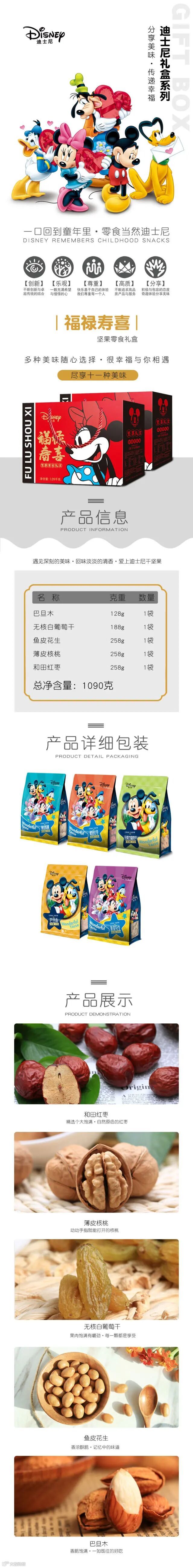 迪士尼坚果礼盒—福禄寿喜红色款1090g/1盒 原价:159元 粉丝群补贴价:119元