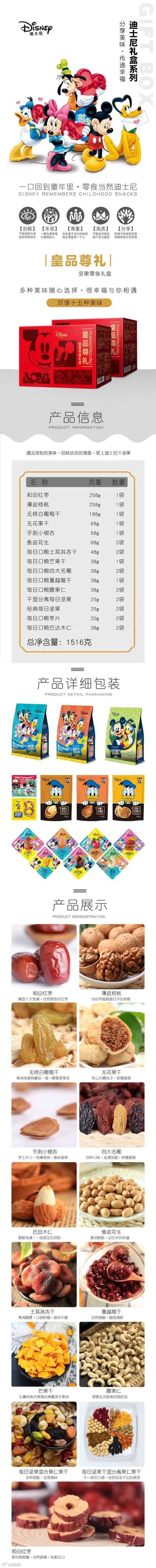 迪士尼坚果零食大礼包—皇品尊礼1516g/1盒 原价:299元 粉丝群补贴价:268元