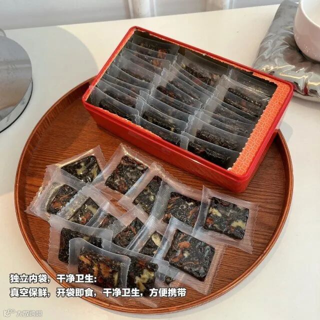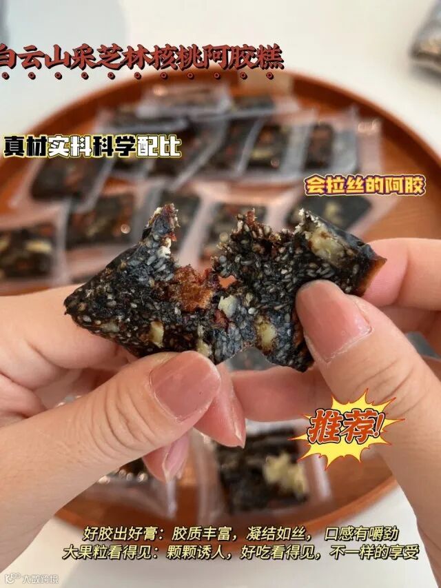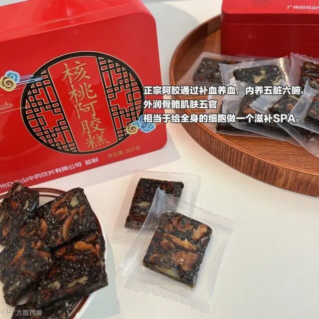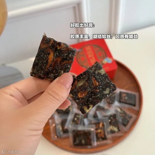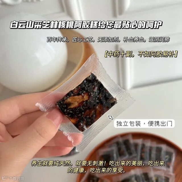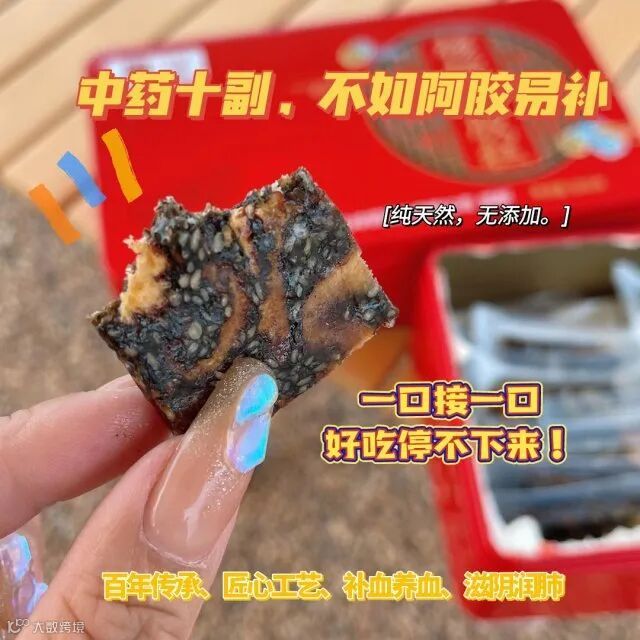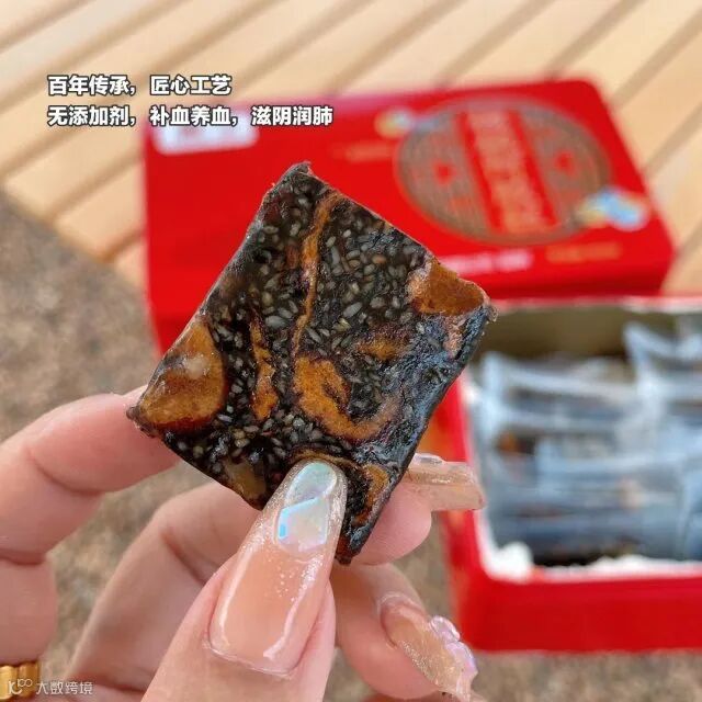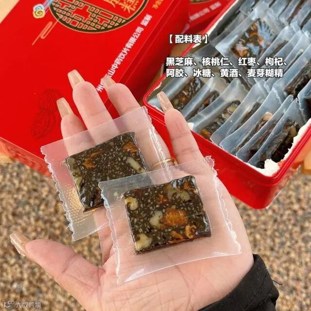 【配料表】:黑芝麻、核桃仁、红枣、冰糖、阿胶、黄酒、枸杞、麦芽糊精