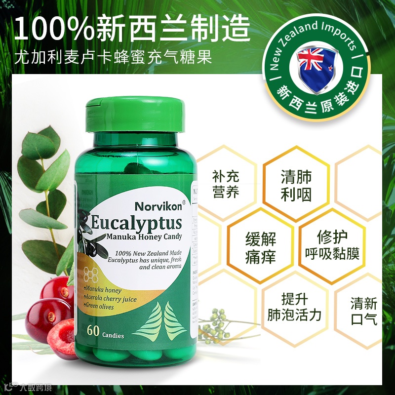 【粉丝群补贴】Norvikon尤加利麦卢卡蜂蜜清肺片60粒/瓶 原价:149元 粉丝群补贴价:99元