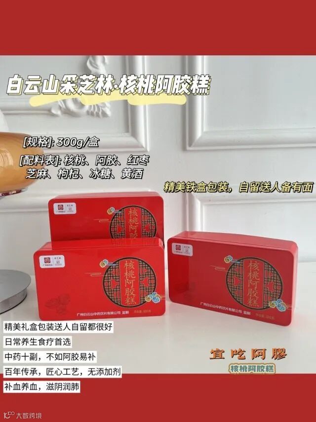 【粉丝群补贴·5盒包邮】白云山采芝林核桃阿胶糕300g/盒 原价:59元 粉丝群补贴价:19.9元