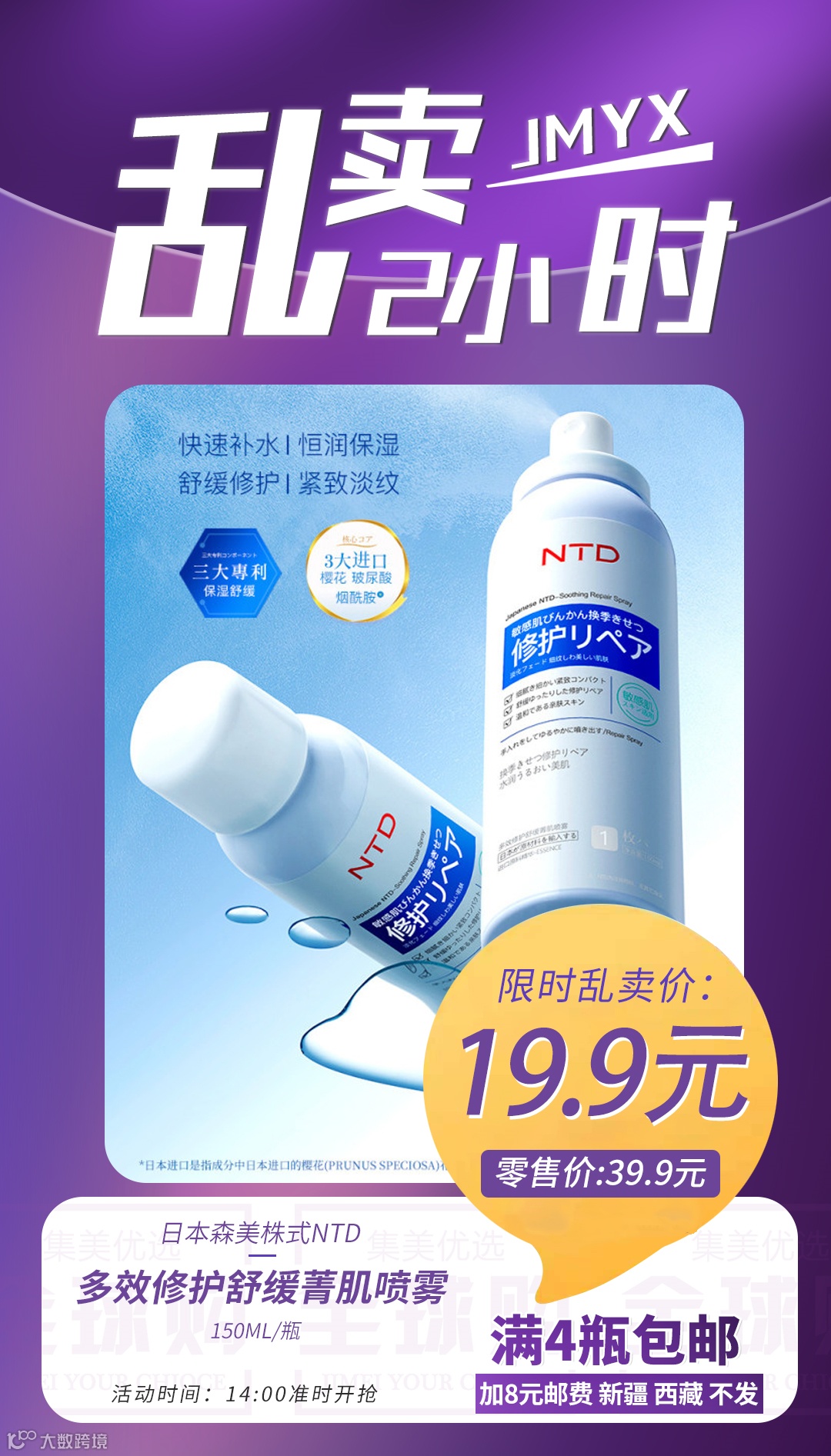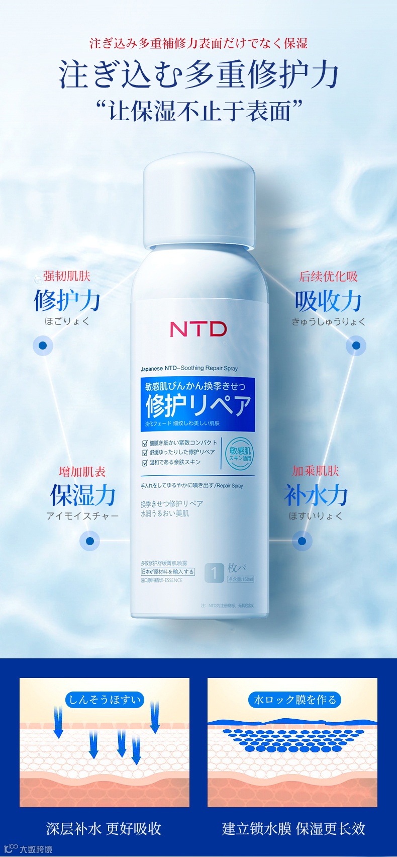 【乱卖2小时·4瓶包邮】日本森美株式NTD多效修护舒缓菁肌喷雾150ml/瓶