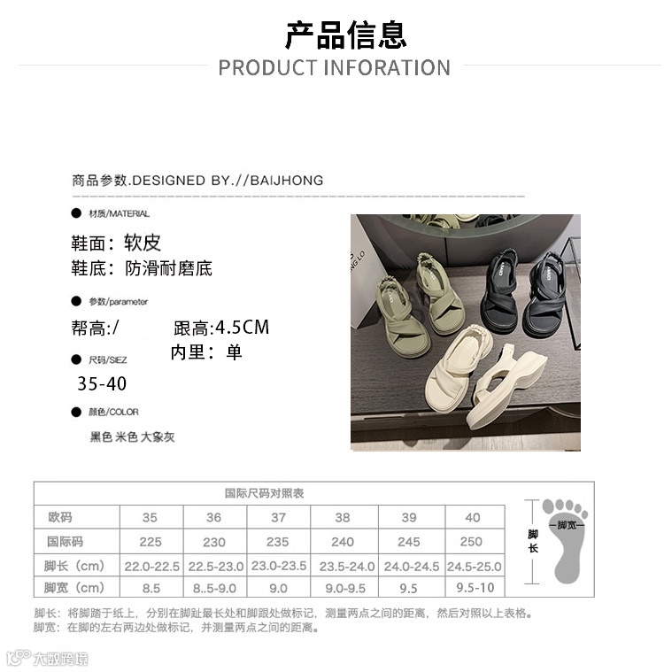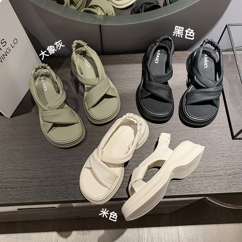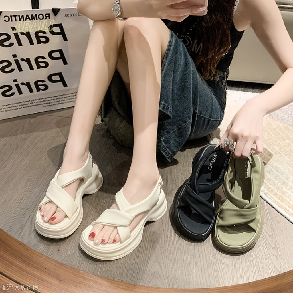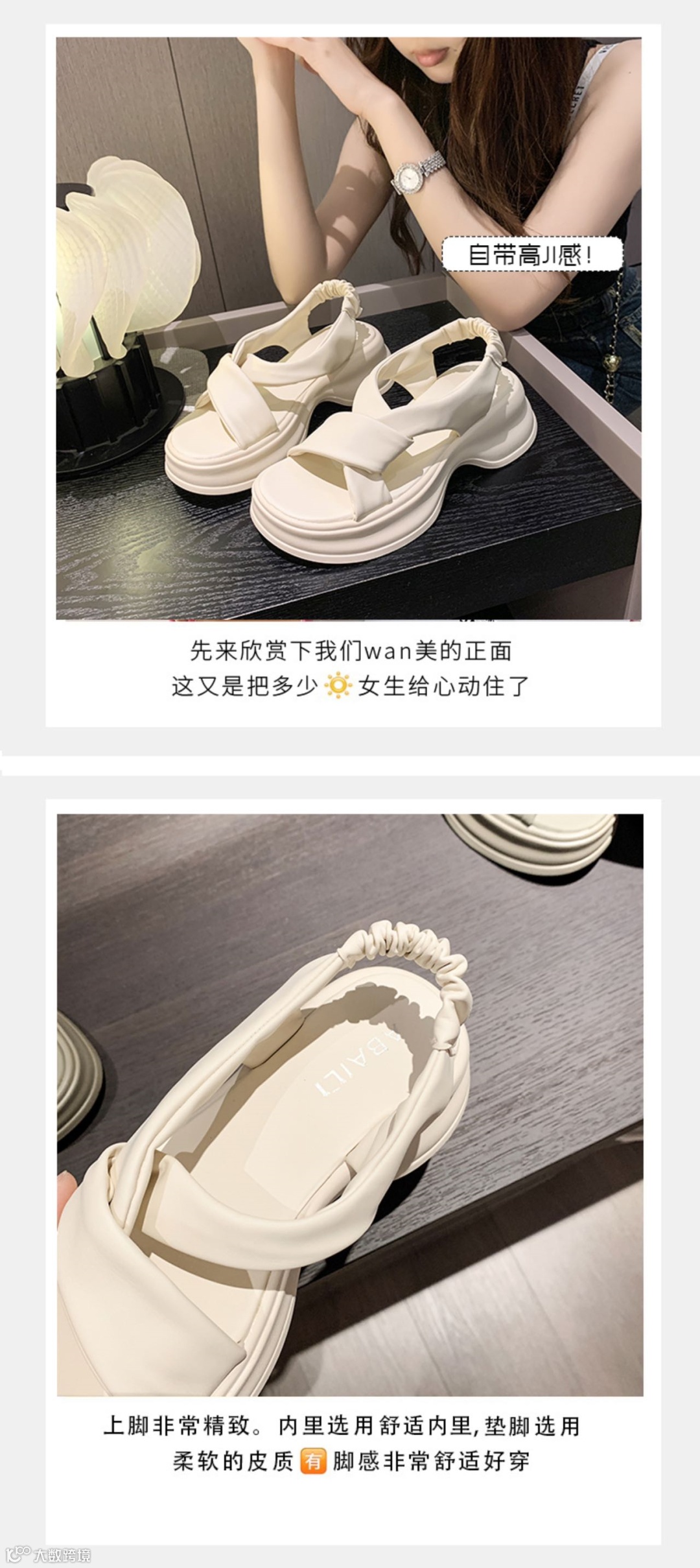 ABAILI阿佰丽仙女风法式厚底沙滩鞋时尚松糕罗马凉鞋