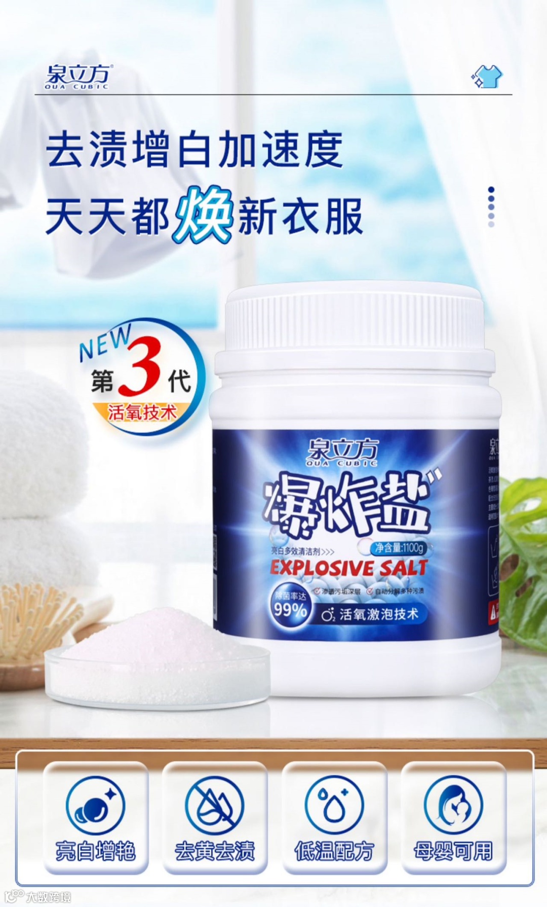 泉立方爆炸盐1100g婴幼儿洗衣去污渍强白色衣物去黄增白