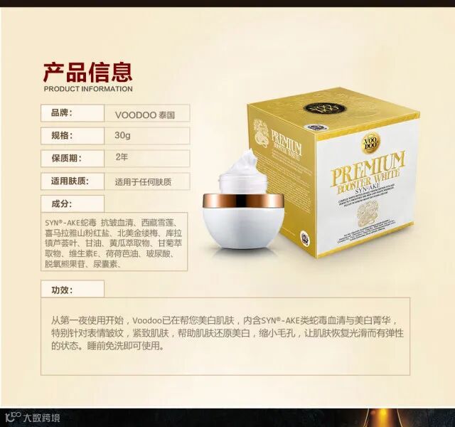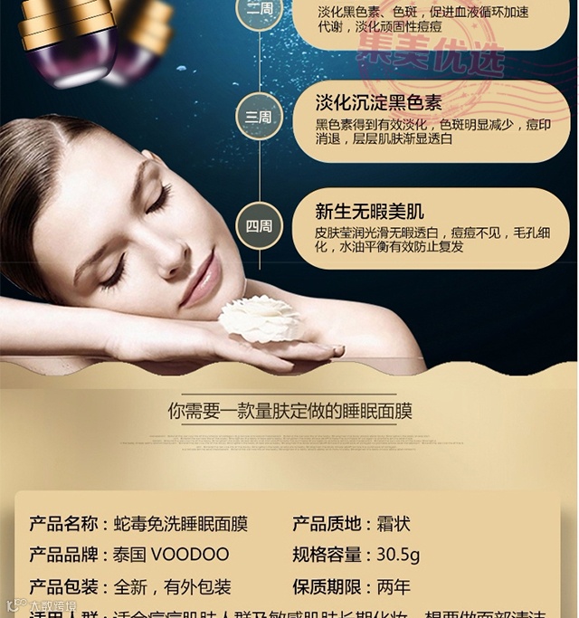 【粉丝群补贴】泰国VOODOO沐朵白蛇毒MEI白除皱免洗睡眠面膜霜30G/盒 原价:199元 粉丝群补贴价:119元
