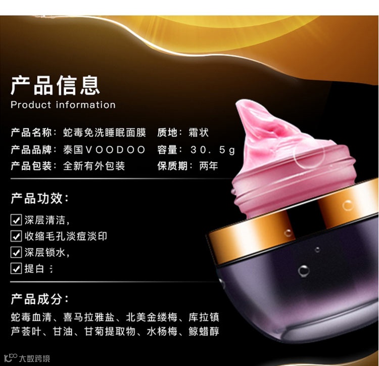 【粉丝群补贴】泰国Voodoo黑蛇毒 免洗睡眠面膜30g 美白保湿 抗皱祛痘印淡 原价:159元 粉丝群补贴价:119元