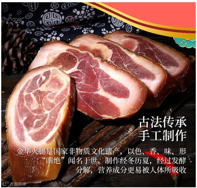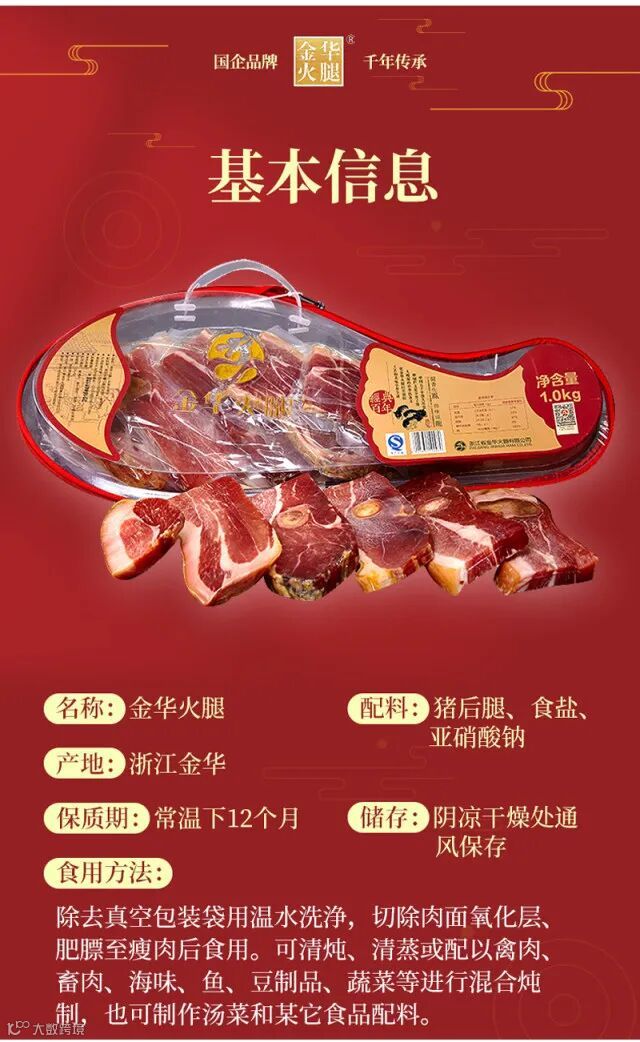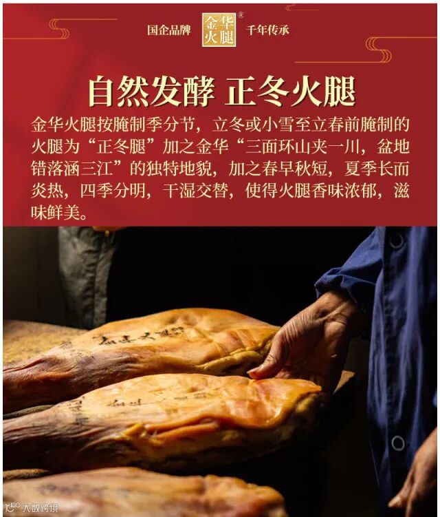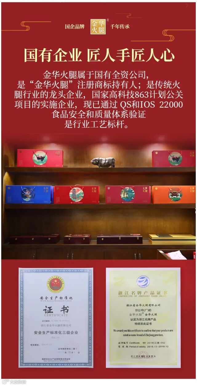 中国国家地理标志产品:1979年“金华火腿”开始以注册商标投入使用。目前为行业内唯一一家国企,品质有保障。