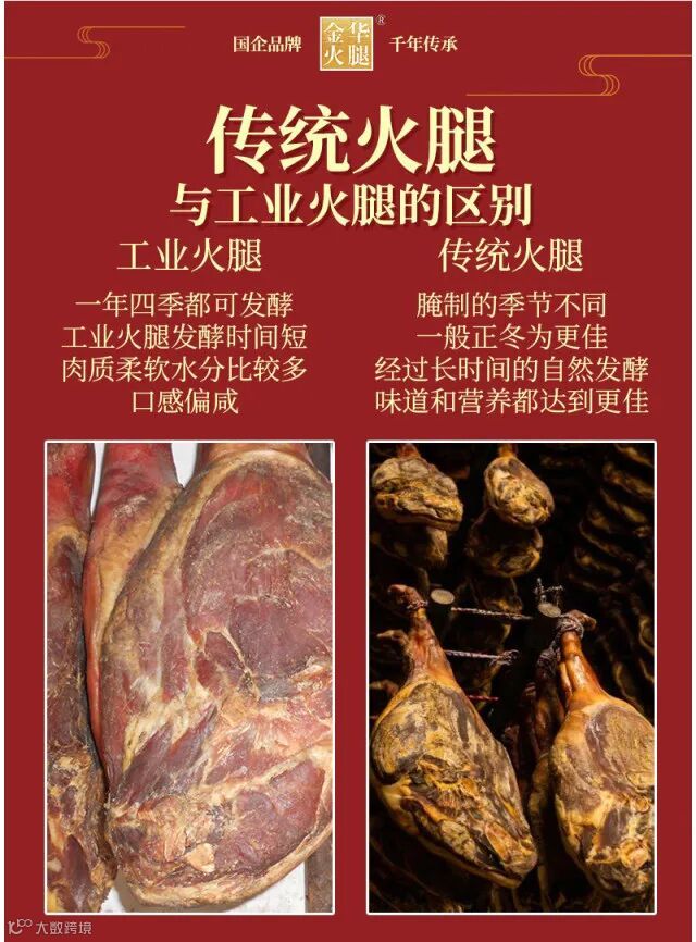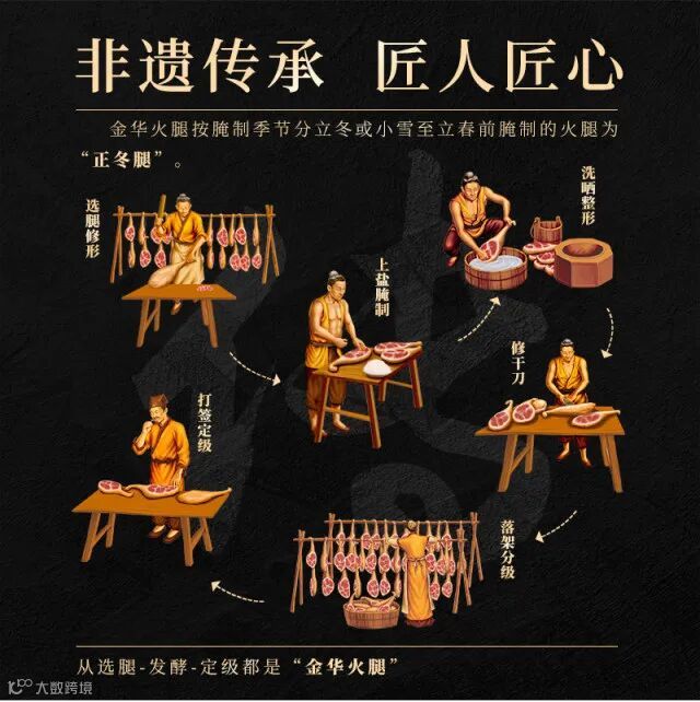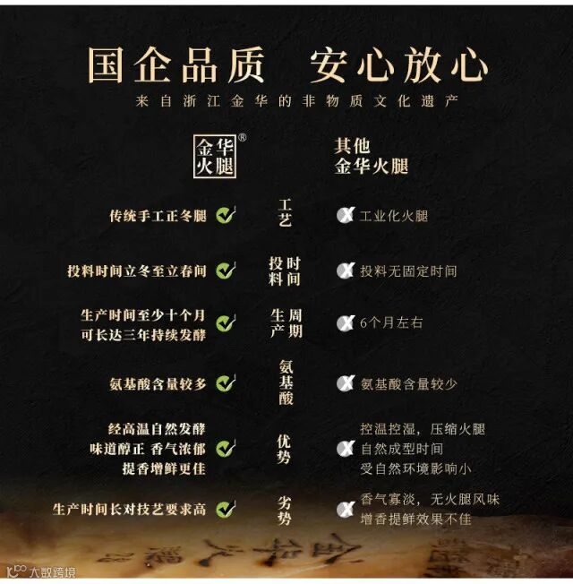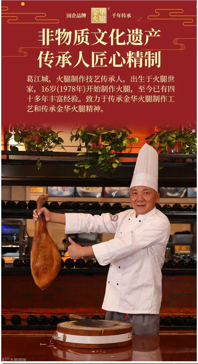 传统工艺匠心制造:传承古法工艺,坚持制作正宗金华火腿,四十八道工序匠心制作,确保每一条火腿都是正宗的金华火腿。