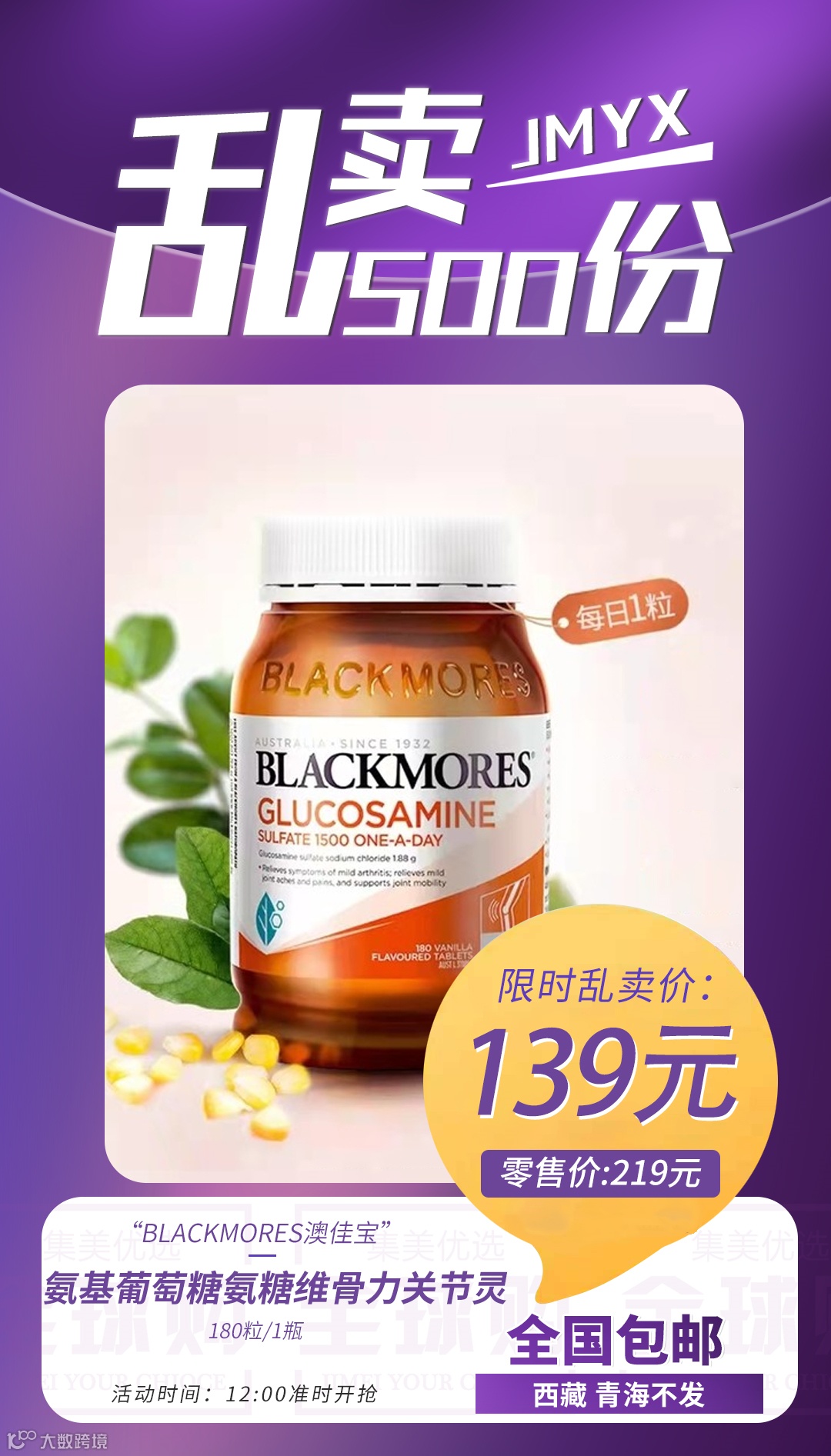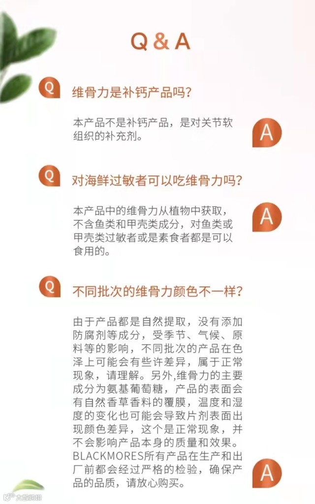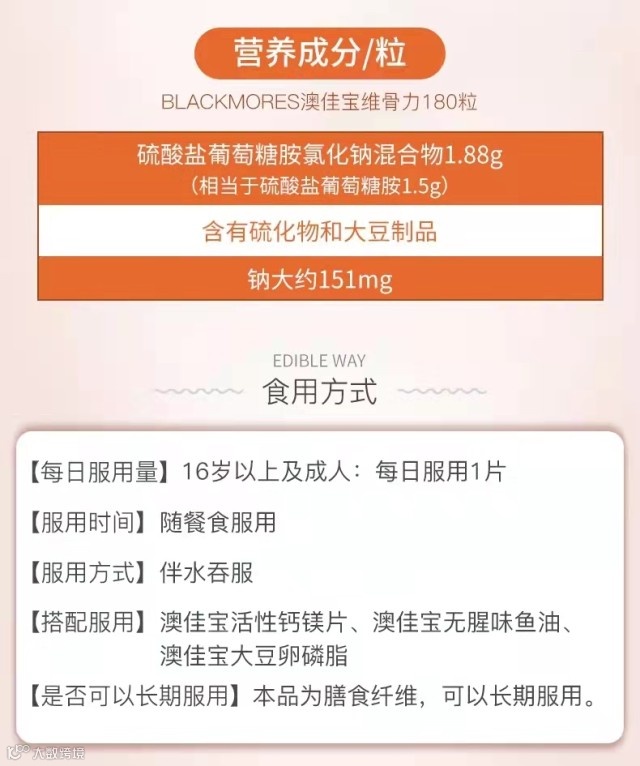 【粉丝群补贴】Blackmores澳佳宝氨基葡萄糖氨糖维骨力关节灵180粒/1瓶 原价:219元 粉丝群补贴价:139元