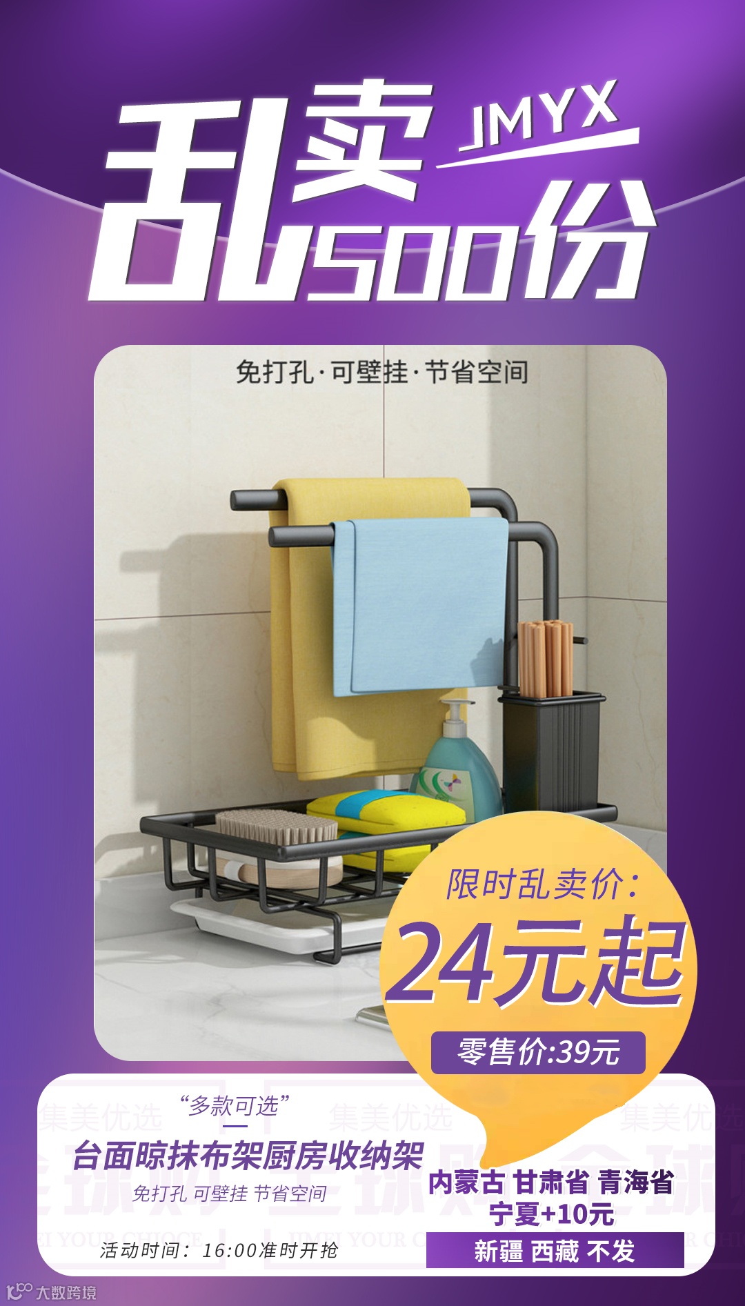 【粉丝群补贴】台面晾抹布架厨房收纳架 原价:39元 粉丝群补贴价:24元起