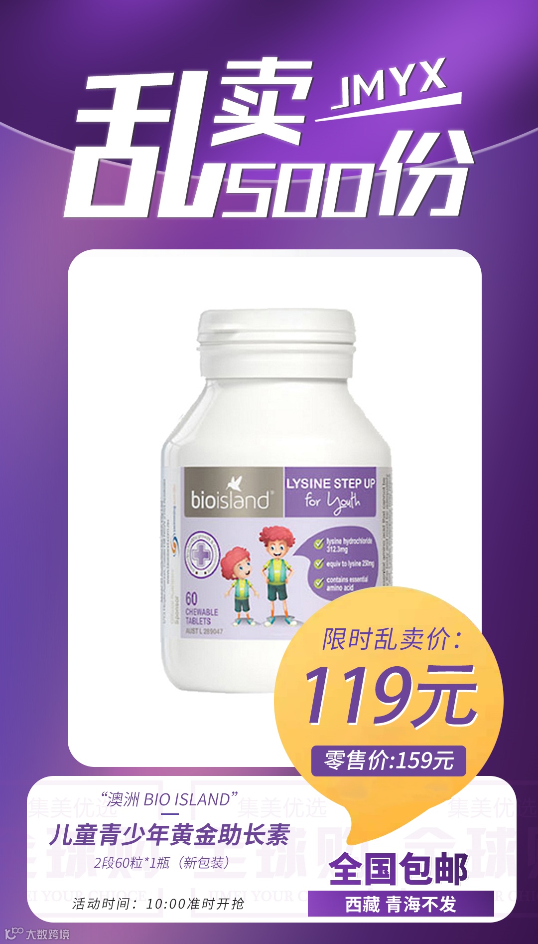 【粉丝群补贴】澳洲 Bio island 儿童青少年黄金助长素2段60粒*1瓶 原价:159元 粉丝群补贴价:119元