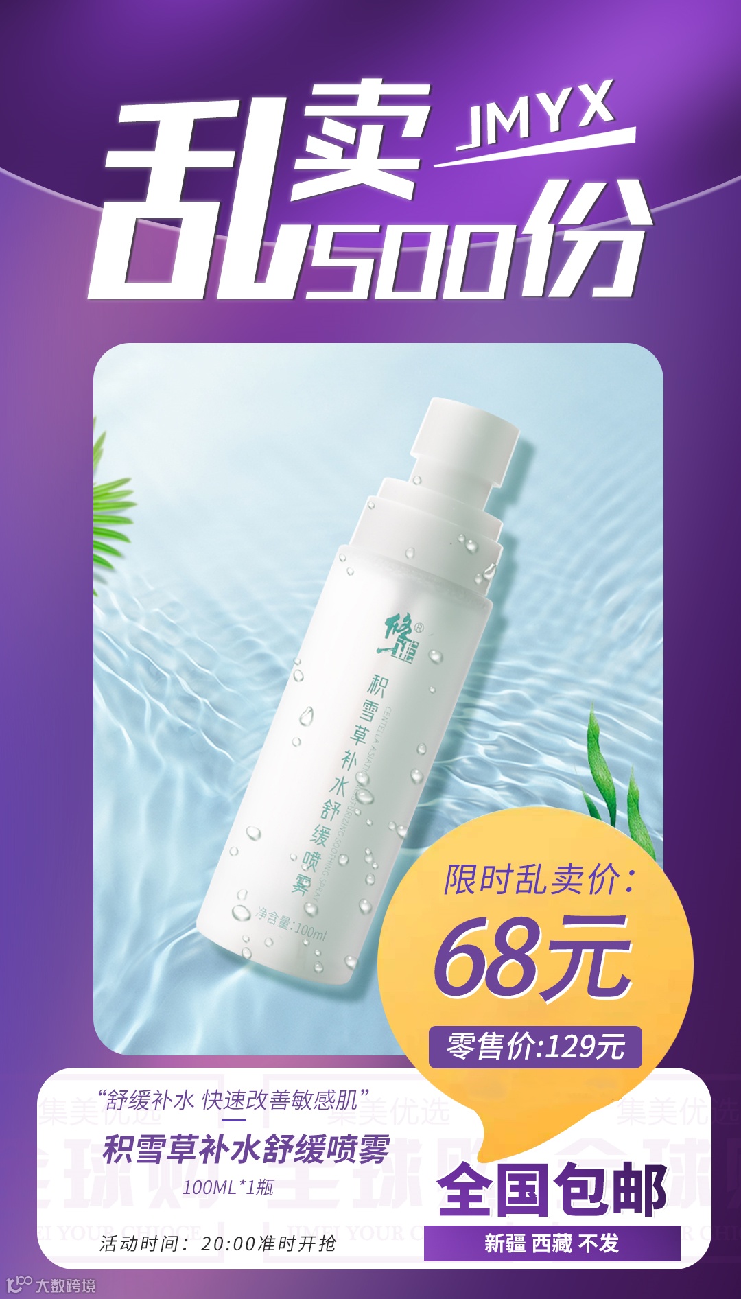 【粉丝群补贴】修正积雪草补水舒缓喷雾100ml*1瓶 原价:129元 粉丝群补贴价:68元