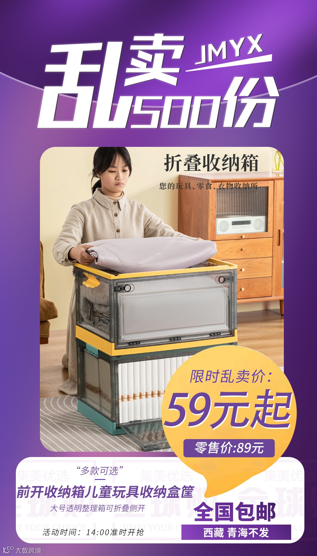 【粉丝群补贴】前开收纳箱儿童玩具收纳盒筐大号透明整理箱可折叠侧开 原价:89元 粉丝群补贴价:59元起