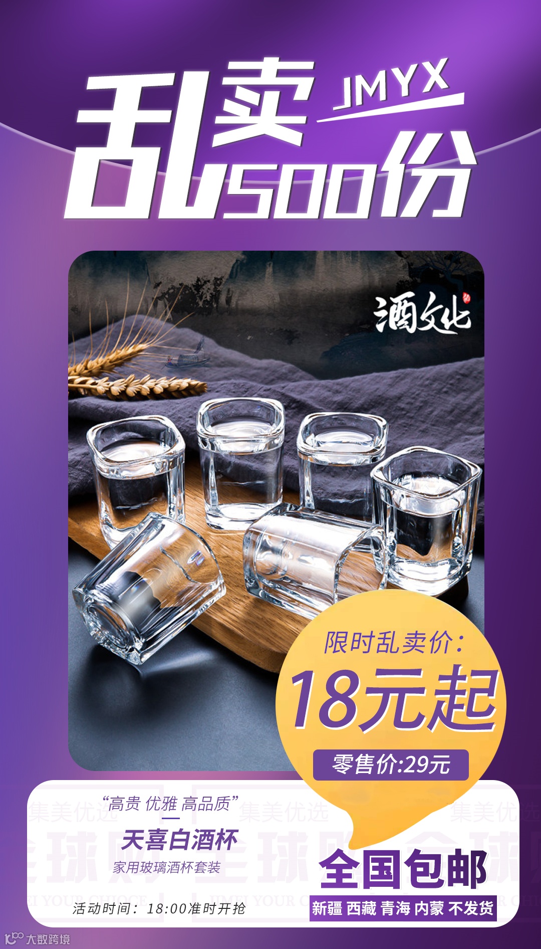 【粉丝群补贴】天喜白酒杯家用玻璃酒杯套装 原价:29元 粉丝群补贴价:18元起